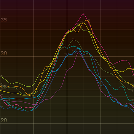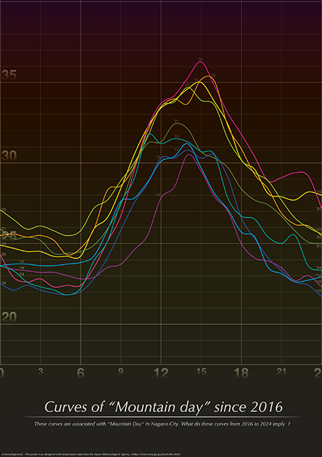 2016年から2024年までの「山の日」における1時間ごとの気温推移をグラフで表現した.「山」となるピークは12時から16時の間であることが読み取れる.年々温暖化が進んでいる中,この「山」たちから何が読み取れるのだろうか.